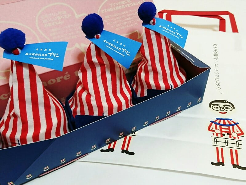 くいだおれ太郎の三角帽子をかぶったユニークでかわいいプリンです。