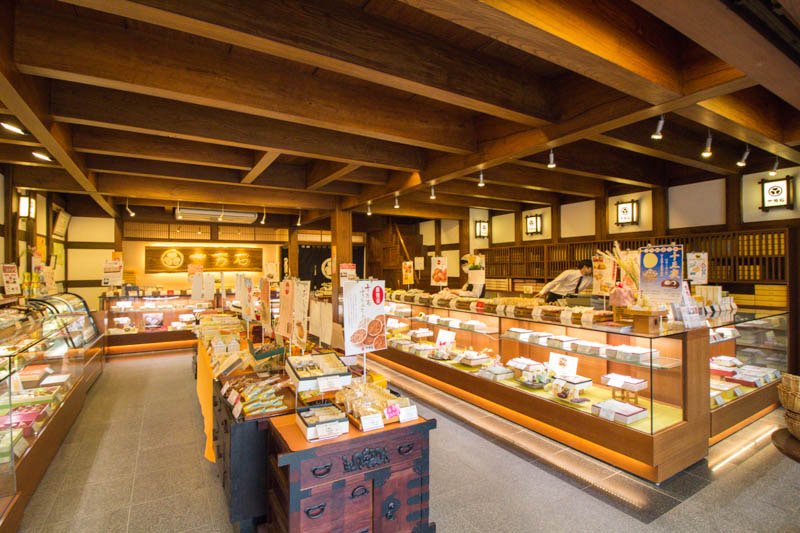 創業当時からつくられている十万石まんじゅうをはじめ、最中・どら焼きといった昔ながらの和菓子や、和洋折衷のお菓子、現在では生ケーキなどの洋菓子まで幅広く取り揃えている菓子店。