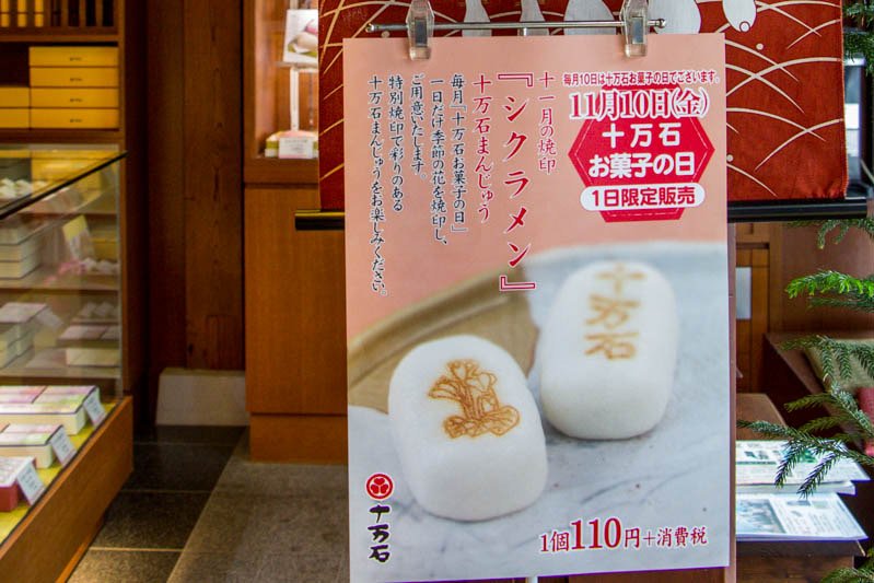 また、毎月10日の「十万石 お菓子の日」には、季節の花を焼印したおまんじゅうを販売しています。