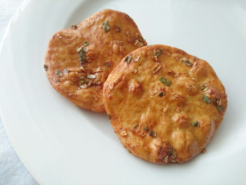 だし醤油で下味をつけ、特製味噌だれと国産乾燥ねぎで味付けしたおせんべいです。