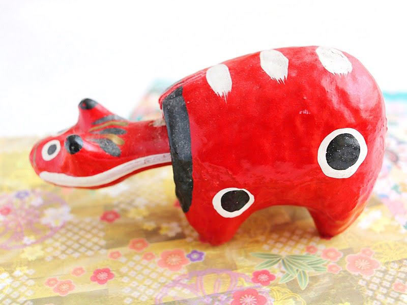 赤べこは、張り子の人形で、首がゆらゆらとゆれるのが特徴。体の赤い色は魔除けの効果があるといわれ、子どもの魔除けを願う縁起物でもあります。