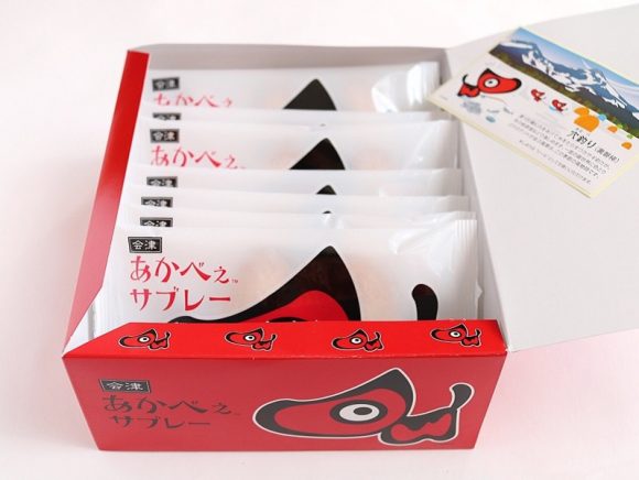 愛らしいあかべぇのイラストが目を引くパッケージ。福島県の会津地方らしいお土産です。