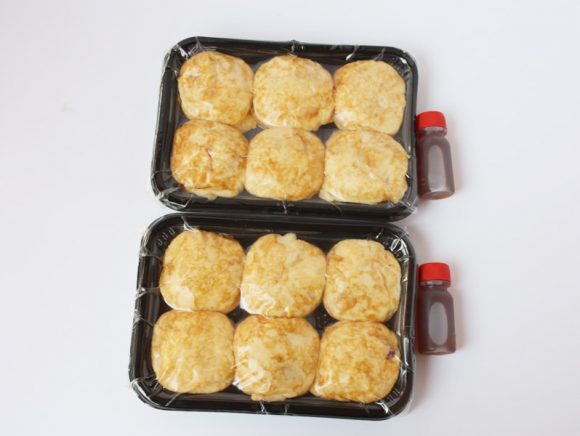明石玉は冷凍状態で販売されており、食べるときに電子レンジかオーブントースターで温めていただきます。