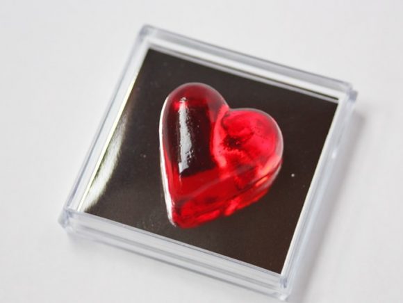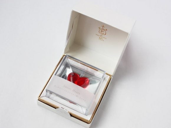 フタを開けると、ケースに入った赤いハート形のキャンディとご対面。