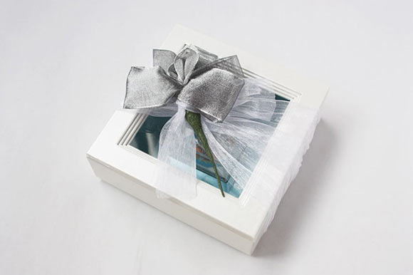 額縁をイメージしたボックスは、光沢のある上品な白色で高級感もありますね。