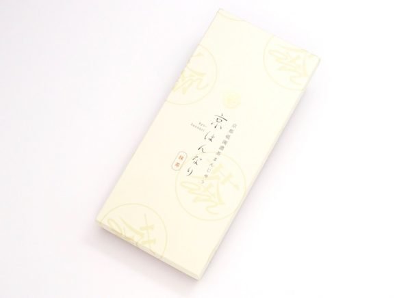 包装紙を開くと、「京はんなり」と書かれたパッケージが登場。文字やデザインにも上品さが宿っています。