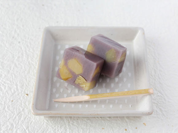 丁寧にアクを取られた藤色のあんこ、寒天のピシッとした羊羹を味わいたい方は練ようかんを。