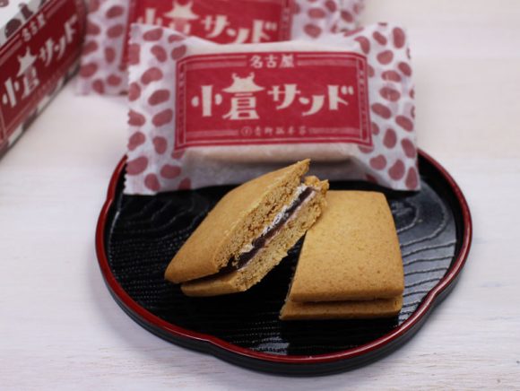 名古屋の喫茶店で人気の小倉トーストをイメージした焼菓子で、小倉あんとクリームが2枚のクッキーでサンドされています。