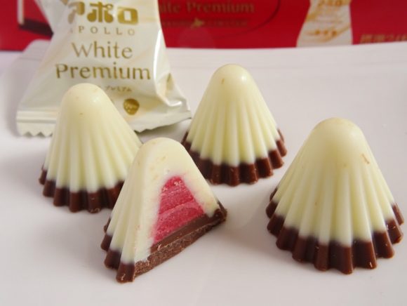 北海道で育まれた厳選したミルクが使用されたホワイトチョコレートに、甘酸っぱいいちごを合わせた北海道限定のアポロ。