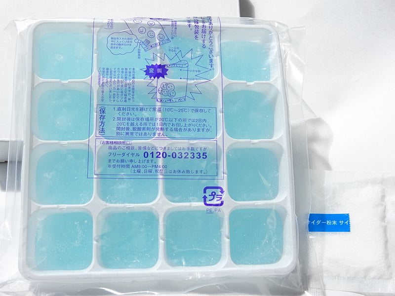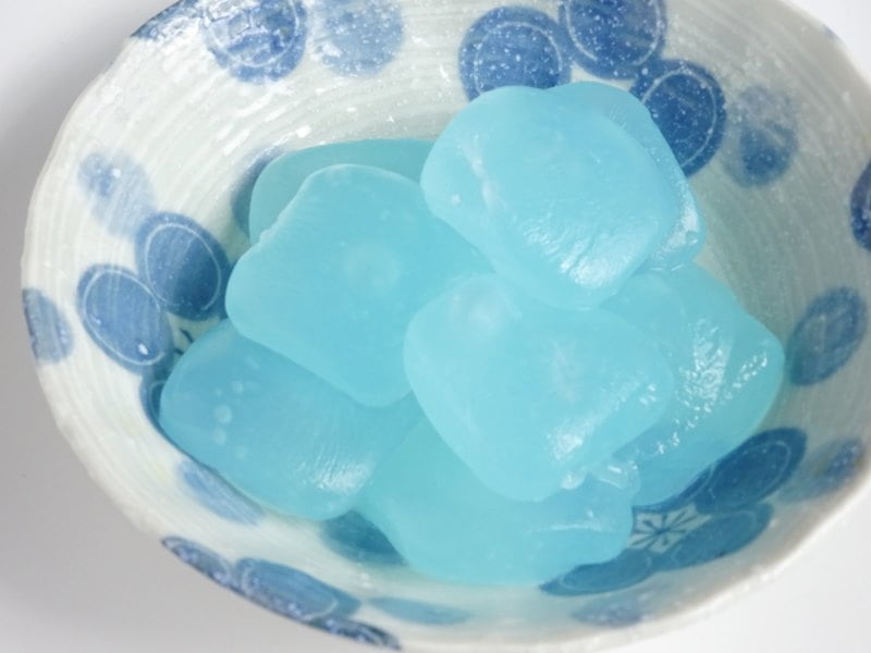 マリンブルー色のお餅は見た目にも涼しげで、夏場やお風呂上がりに食べるとよさそう。
