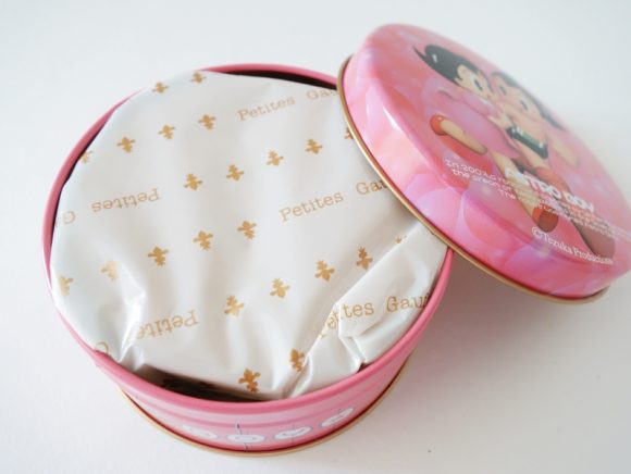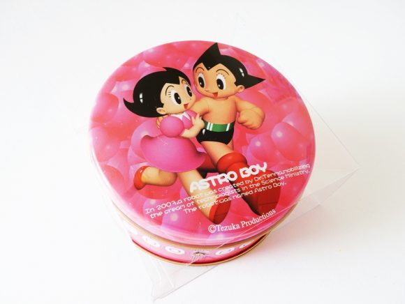 鉄腕アトムのイラストが描かれた、缶入りのゴーフルです。