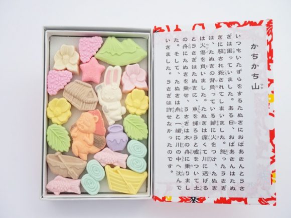 昔ばなしにちなんだ干菓子は、20個入り。個包装はされていませんが、賞味期限が約1年ほどあるので、日持ちを気にせずいただけます。