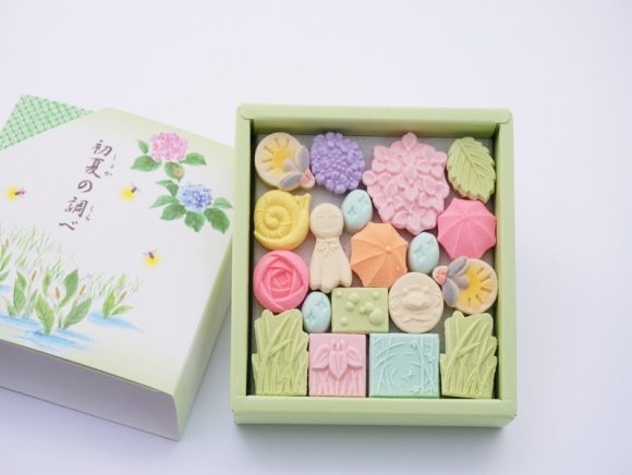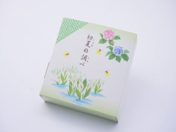 水辺に咲く花とホタルが舞う風景など、日本の初夏をイメージした干菓子が入っています。