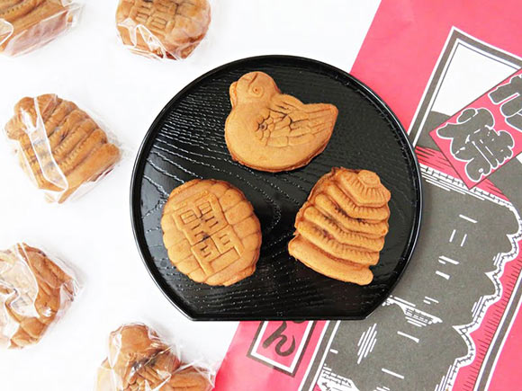 形は五重塔、提灯、鳩の3種類。コロンとかわいいサイズで、お茶請けにもぴったりです。