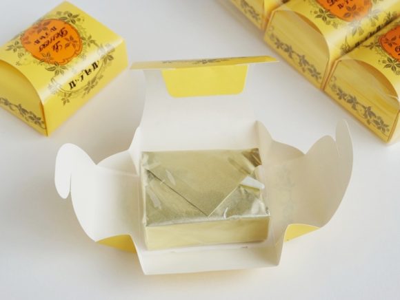 1つ1つが小さな紙箱に包まれた高級感のあるパッケージに、中世を思わせるような文字と模様がなんともレトロ。