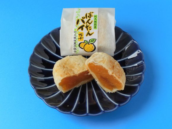 今回紹介するぼんたんパイ万頭は阿久根のお菓子やさんが共同開発した商品で、もちろん阿久根特産のぼんたんが使われています。