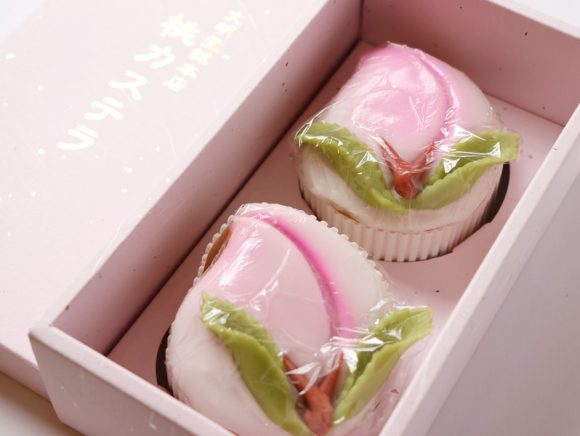 カステラの上に白地にほんのり紅を染めた砂糖蜜をかけ、桃の形に仕上げた桃カステラは、その愛らしさと縁起の良さから、お宮詣り、初節句、快気祝いなどの慶事やお祝いごとによく使われているのだとか。