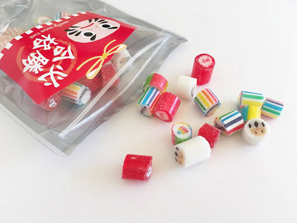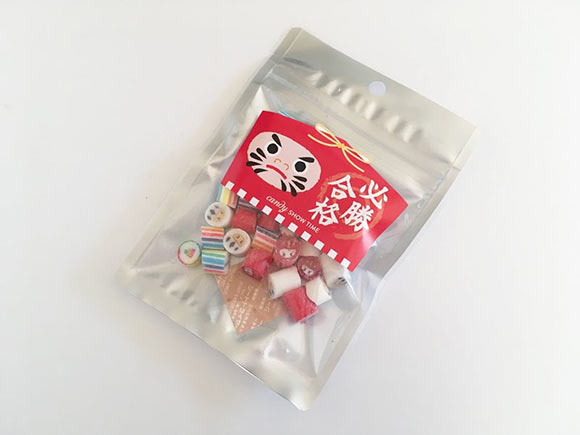 赤と白のだるまや、「必勝合格」、「ヤレバデキル!」、「DO YOUR BEST」とかかれたカラフルなキャンディーが入っています。