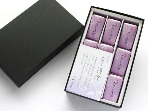 大納言清澄には厳選された大納言小豆が使われています。その大納言小豆をやわらかく炊きあげて、天日干しの極上寒天で表面をうっすらと固めた、とても涼しげなお菓子です。