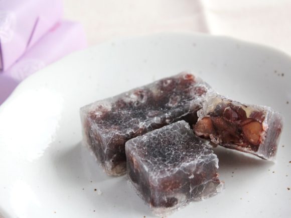寛永7年(1630年)創業の千鳥屋宗家が手がける、大納言小豆を寒天で固めたお菓子です。