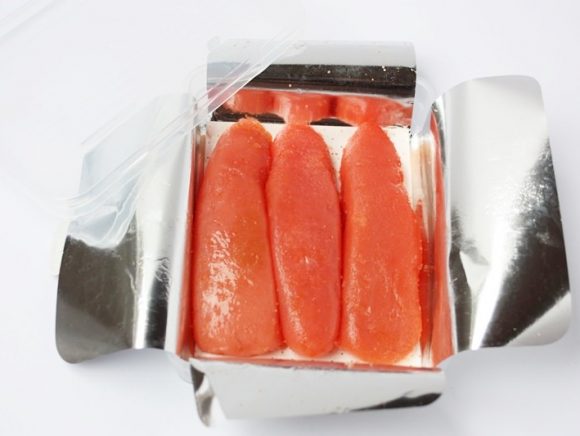 私が購入したご贈答用の辛子明太子は、1箱148g入り(3~4本)で、プラスチックのケースに入っていました。
