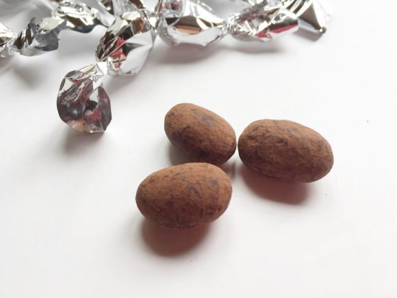 包みを開けると、ココアパウダーがまぶしてあるコロンとした形のチョコレートが顔を出します。