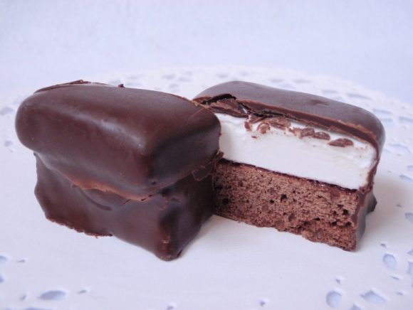 マシュマロとココア風味のビスケットの間に木苺のコンフィチュールをサンドして、それをチョコレートでコーティングしたお菓子。