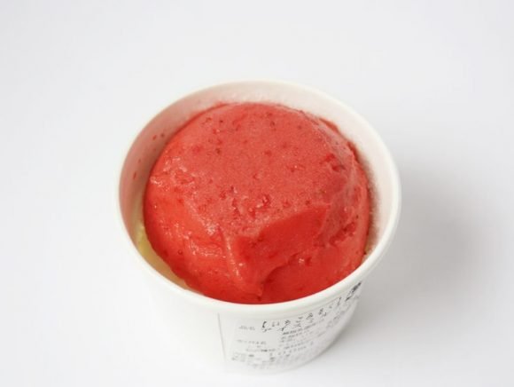 まず、いちごのシャーベットから食べてみると、つぶつぶとしていて、少しシャリッという食感でした。