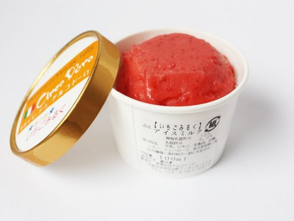 「いちごみるく」は、大阪にある手作りジェラート専門店チルコドーロが手がけるアイス。
