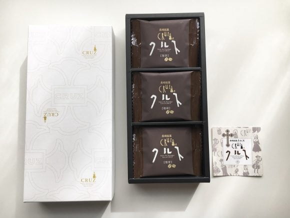 長崎銘菓として名高い「クルス」は、サクサクの香ばしい生地に珈琲チョコレートをサンドした芳醇な香りが楽しめる焼菓子です。