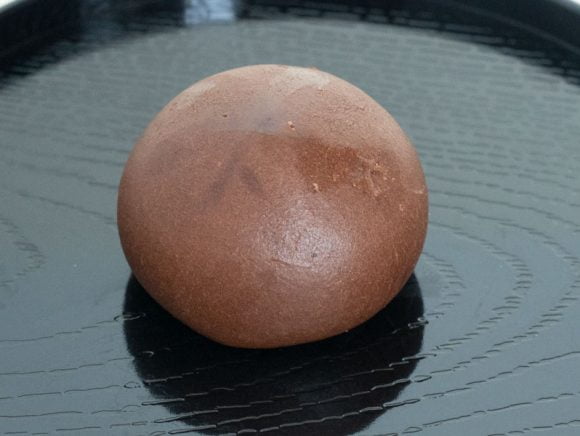 ドーム型をした饅頭で、 濃い焦茶色をしています。
