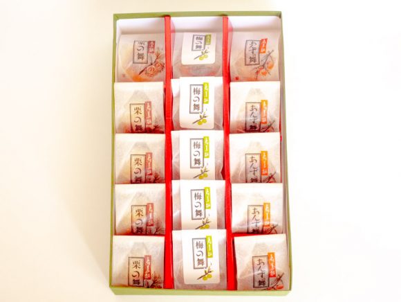 「あんずの舞」「梅の舞」「栗の舞」の3種類の詰め合わせです。