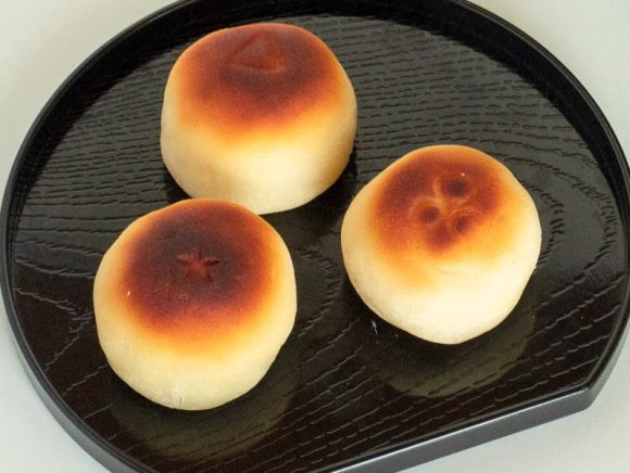 上部には種類ごとに焼印されていて、見分けられるようになっているんですよ。あんずが三角形、梅が星、栗が丸3つです。