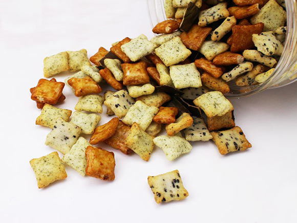 ごま・青のりは軽い食感で、しょうゆは程よい食感。こんぶはパリッとしています。