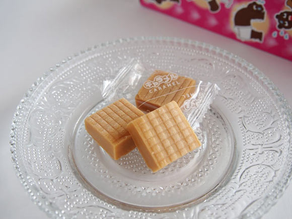 「ミルクキャラメル」と書いてあるので、きっと中身は白いのだろうと想像しましたが薄い茶色。