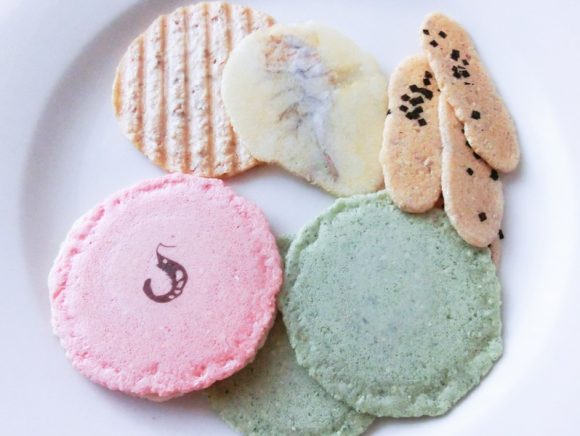 他には、えびが丸ごとプレスされたものや、ごまが使われているもの、あおさが使われているものもありました。