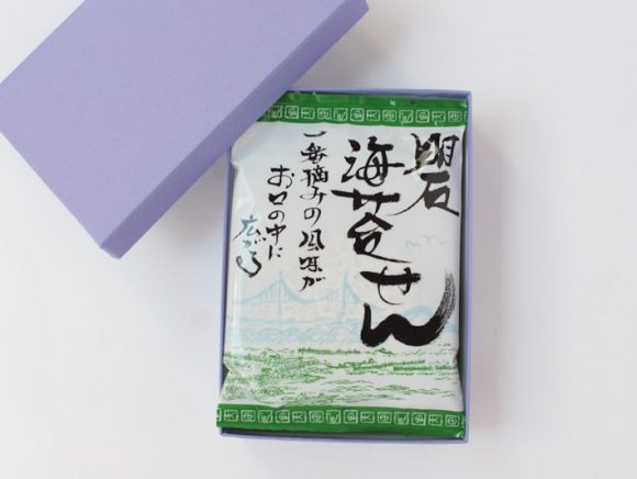 明石海苔せんは1枚から購入可能。あかしたこせんなど、その他の商品と一緒に箱詰めしてもらうこともできます。