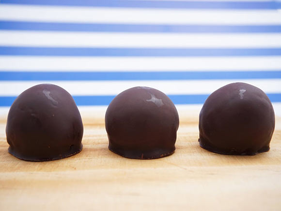 まわりはビター味のチョコレートでコーティングされており、口に含んだ瞬間、ほろ苦さを感じます。