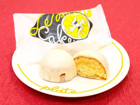 ケーキの生地にはレモンピールが入っており、生地のコーティングに使われているホワイトチョコレートもレモン風味に仕上げられているのが特徴です。