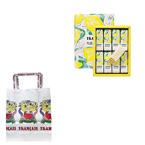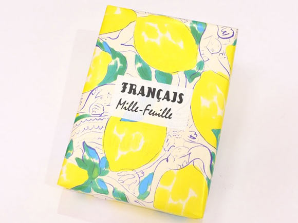 鮮やかな黄色いパッケージの中に入ったミルフィユは、可愛らしいレモンのイラストが描かれた包装紙に包まれていますよ。