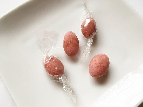 中には、アーモンドをストロベリーチョコレートでコーティングしたチョコレート菓子が10粒入っています。