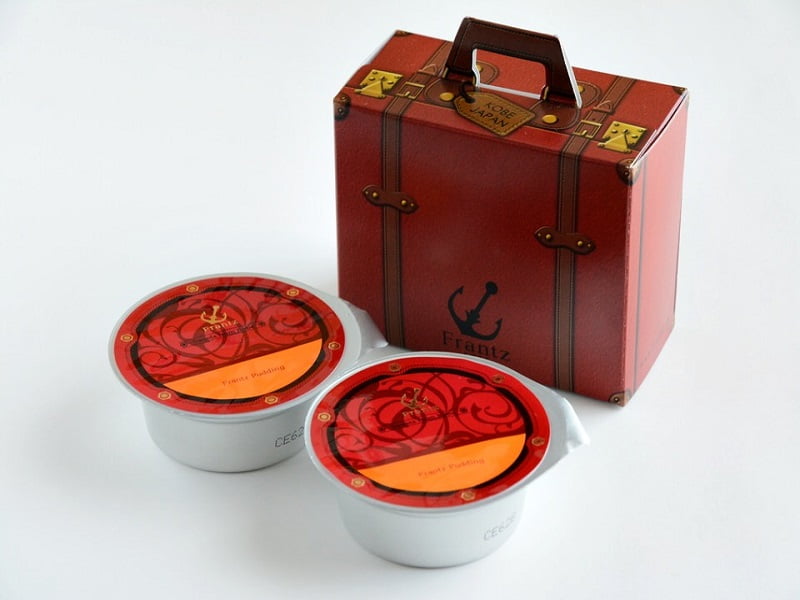 レトロな雰囲気が漂う鞄型のパッケージ。こちらには神戸フランツがつくるプリンが入っています。
