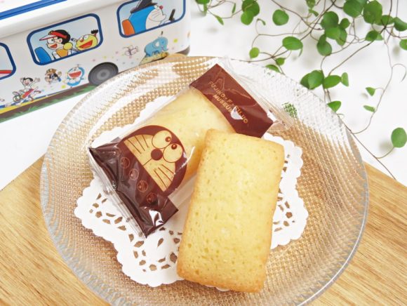 フタを開けると、ドラえもんの袋に入った小さめのフィナンシェがたくさん入っています。
