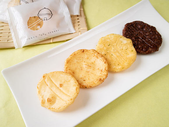 かつお七味、だし醤油、揚げ塩、黒米揚げの組み合わせで、東京駅グランスタ店での限定商品ですよ。賞味期限は70日ほどです。