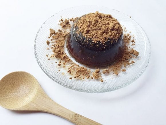 分大といえば、羊羹やもなかが有名なんですが、今回購入したのは夏の涼菓の一つ「黒わらび餅」。沖縄県産の黒糖を使ったわらび餅に、黒きな粉をかけて食べる和菓子です。