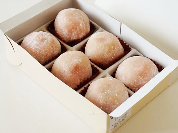 ころんとまあるい大福は、直径・高さともに4.5cmほど。手にもつとずっしりとした重みがあります。