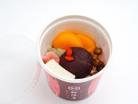 透明なフタ越しに、カラフルなあんみつの具材が見えてワクワクしてきます。