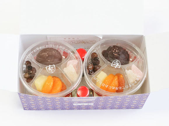 今回は、オンラインショップで「あんみつ」と「小倉あんみつ」のセットを購入してみました。