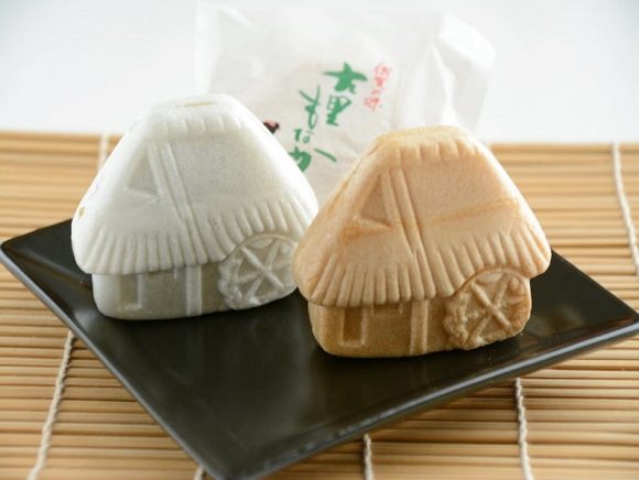 昔ながらの素朴な家の形をしたもなか、故郷ではなく古里と書いてあるのも印象的ですね。
