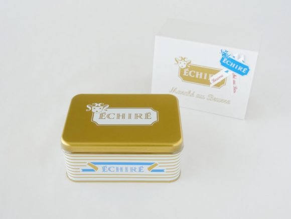 オリジナルのデザイン缶ですが、ゴージャスなゴールドをベースに、白地のロゴと鮮やかなエシレブルーのロゴがあしらわれています。
